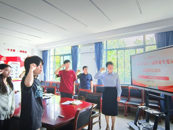 活动在雄壮的国歌声中拉开序幕。孙雪萍领誓,全体毕业生党员代表面向党旗,右手握拳,庄严宣誓,声音铿锵有力,表达了对党的忠诚和对未来的庄严承诺。