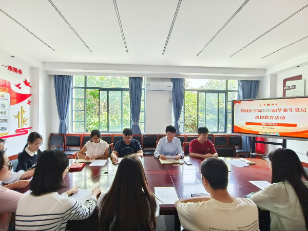 在毕业生同学奔赴人生的新征程之际,基础医学院举行毕业生党员离校教育活动,不仅是对毕业生党员的一次专题教育,也寄托着对同学们的美好祝愿与期待。