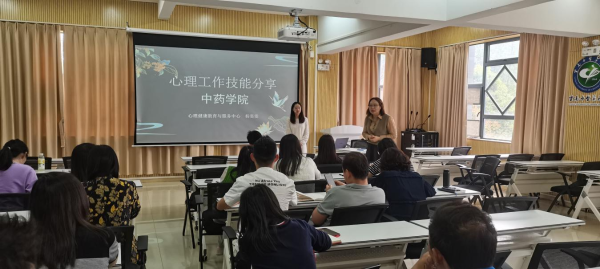 云中讯(通讯员 施晓蕾)为加强中药学院学生工作队伍心理健康指导水平和工作能力,提升大学生心理健康素养,助力新时代大学生健康成长,中药学院于4月11日下午在呈贡校区组织开展春季心理健康教育专题培训会。专题培训会由学校心理健康教育与服务中心杨雯雯教师主讲, 学院全体辅导员和班主任参加,学院党委副书记张文平主持培训会。