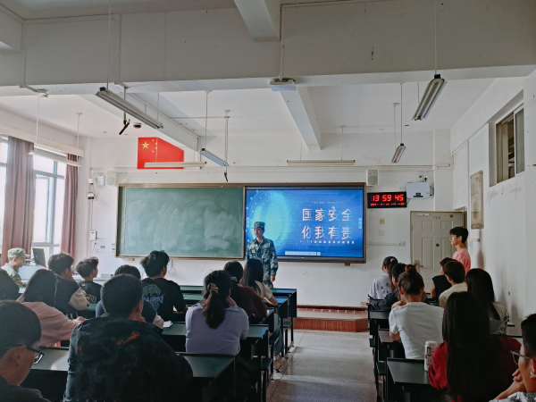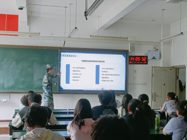 学校国防后备连欧阳玉潇、李学恒两位同学从日常生活中如何增强安全意识、维护国家安全,国家安全教育的主要内容,我国面临哪些复杂的安全问题,与国家安全密切相关的法律法规有哪些,如何举报破坏国家安全的行为等几个方面为各班安保委员展开了培训和讲解,讲述了从进入大学到应征入伍,再到最后光荣退伍的难忘军旅经历。
