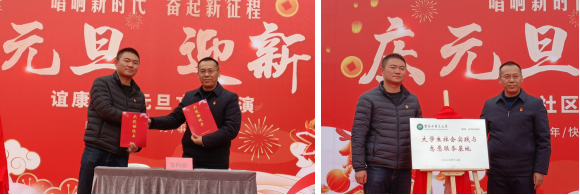 云中讯(通讯员 陆娅琳)2023年12月29日,护理学院与谊康社区校地共建签约暨大学生社会实践与志愿服务基地揭牌仪式在谊康社区举行。护理学院党委书记毕立雄、护理学院党委副书记黄冬梅,呈贡区谊康社区党总支书记段靖冬、呈贡区吴家营街道党工委组织委员李德盛,护理学院学生师生党员代表、社区居民代表参加活动。