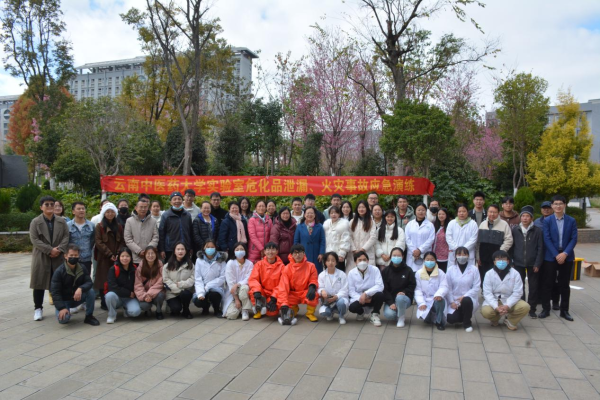 云中讯(科技处)12月21日上午,科学技术处、教务处、保卫处联合主办,中药学院承办的云南中医药大学实验室危险化学品泄漏、火灾事故应急演练在呈贡校区二期小广场开展。演练旨在助力师生掌握实验室安全事故应急处置程序和方法,提升学校实验室安全管理水平,中药学院师生代表参加演练,各学院师生到场观摩学习。