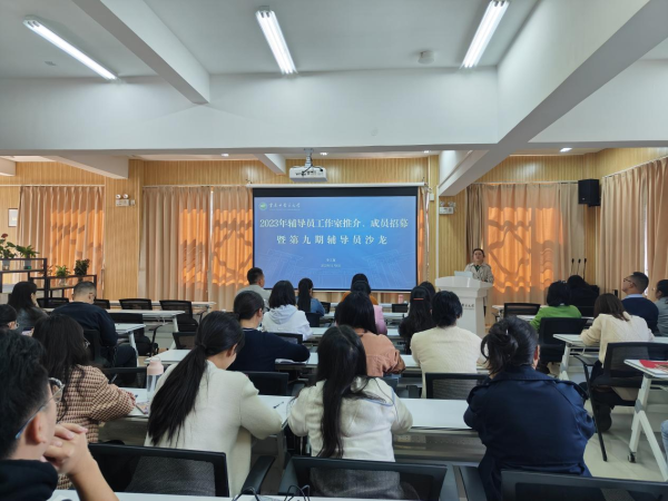 云中讯(学工部)11月8日下午,2023年校级辅导员工作室推介、成员招募暨第九期辅导员沙龙在呈贡校区和合楼215活动室举行。全体专职辅导员参加,学工部副部长田园主持。