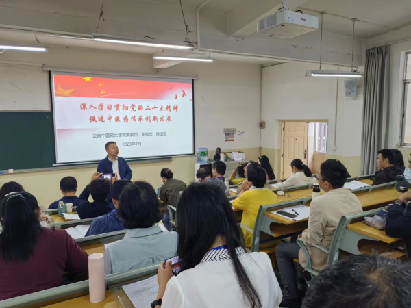 陈祖琨代表学校对培训开班表示祝贺。他强调,本次高级研修班旨在深入实施新时代人才强省战略,加强我省中医药专业人才队伍建设,深入学习贯彻党的二十大精神和省委十一届三次全会精神。希望来自各行各业的学员在研修过程中加强交流与沟通,在中医药发展迎来“天时、地利、人和”历史机遇的背景下,传承好中医药文化,共同做大做强云南省中医药大健康产业。希望学员珍惜机会、提高认识、端正态度,做到学有所思、学有所得、学有所成。