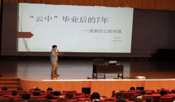 张光远作“‘云中’毕业后的7年——找到自己的价值”为主题的分享。通过讲述自己的教育经历、工作经历,提醒同学们要认真学习,不断提升自己的价值。同时,还向同学们详细介绍了临床技术支持岗位,引导同学们在未来就业时要打开思路,抓住更多的就业机会。