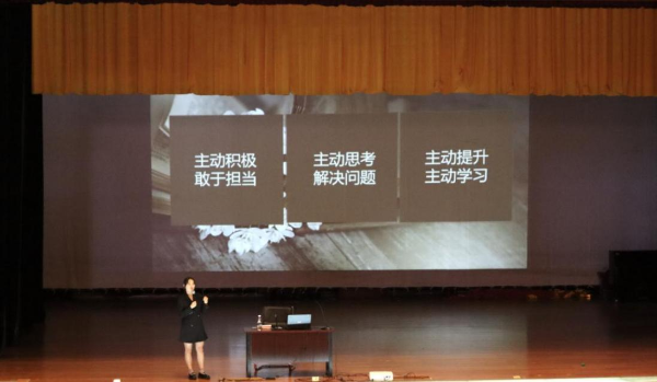李佳杏以“深耕自我”为主题,从关于“我们”、职业规划、自我管理三个方面展开讲授,提醒同学们在大学期间要不断进行自我探索,了解自己的兴趣爱好和优势特长,做好未来职业规划,活出人生的意义。