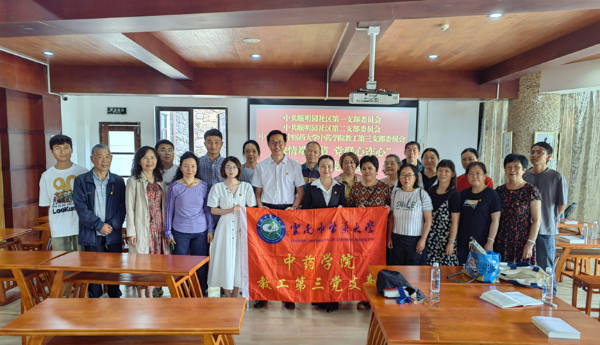 签约揭牌仪式后,中药学院教工第三党支部与颐明园社区第一、第二党支部开展链式主题党日活动,专家为党员们作端午节中医药知识讲座,颐明园社区第一、第二党支部书记带领全体党员学习《中国共产党章程》《中国共产党纪律处分条例》。