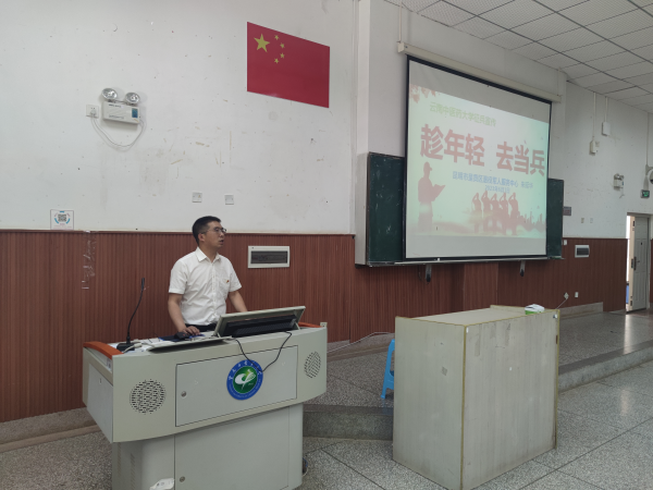 云中讯(通讯员 李泽飞)为响应国家号召,进一步增强大学生国防安全意识,鼓励大学生投身社会主义强军、强国征途。6月1日,护理学院在呈贡校区召开征兵宣传动员会。宣讲会邀请了呈贡区退役军人服务中心主任朱延华主讲。护理学院党委书记毕立雄,各年级辅导员,学院全体男生、有志报名女兵征集的女生参加动员会。会议由学院党委副书记黄冬梅主持。