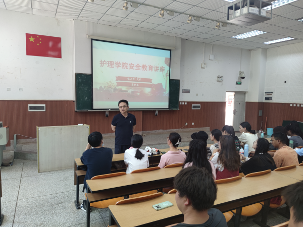 云中讯(通讯员 李泽飞)为进一步提高学生安全意识,深化学院安全工作,保障师生在校期间各类人生、财产安全。6月1日,护理学院在呈贡校区举行安全主题教育讲座。保卫处处长秦红军以《筑牢安全意识 共享美好时光》为题向与会同学宣讲校园安全知识。会议由院党委副书记黄冬梅主持。学院各班团支委成员、班委会成员、各宿舍长参会。