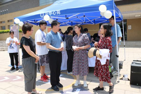 杨鹤清与同学、心理健康专兼职教师亲切交流