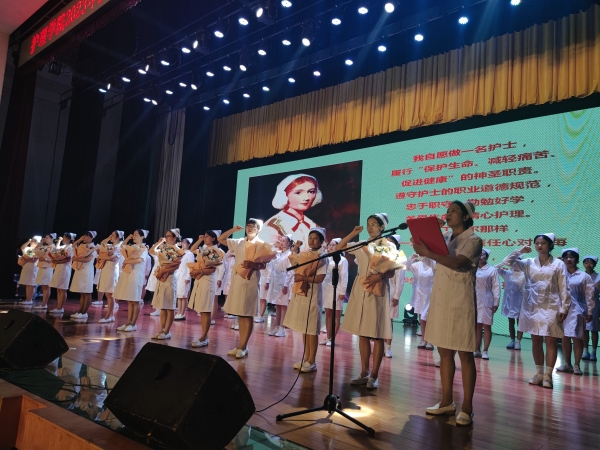 授帽仪式上,12位由临床导师和护理学院教师代表组成的授帽专家团,为36名2023届优秀毕业生代表戴上纯洁神圣的护士帽,护理学院毕怀梅教授带领全场护理师生庄严宣誓。同学们铿锵有力的誓言,将晚会推向高潮。伴随着合唱《中国护士之歌》优美动听的歌声,本次晚会圆满落幕。