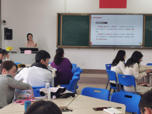 程三娟紧密围绕主题,从网络舆情的概念界定及应对措施进行讲解,结合具体案例,与老师们进行分享。强调网络舆情处置要着重把握“情”与“理”、“控”与“导”、“管”与“育”的关系,将网络舆情处置与学生网络思政工作紧密结合,为辅导员切实做好学生教育管理工作提供具体指导和方法策略。