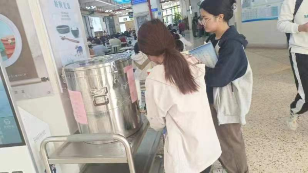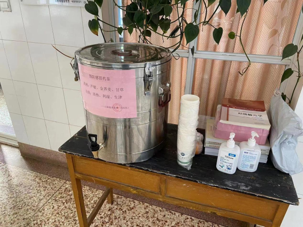 后勤服务集团(校医院)组织食堂工作人员熬制“防感茶饮”,工作人员从泡药、煎药、过滤到出锅均严格按照医嘱,精准掌握熬制的时间和水位,标注选用中药材及其功效,并提供一次性纸杯、酒精洗手凝胶,方便师生取用。盛满褐色药液的药桶里,中药材散发出的腾腾热气伴着暖汤铺开,浓浓的暖意传达到大家心中。