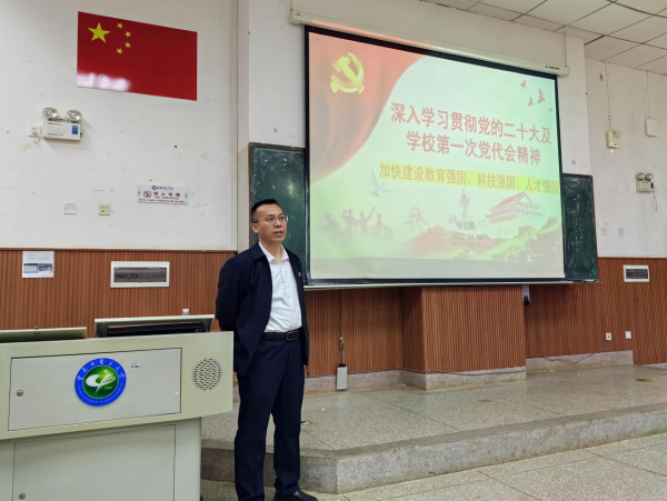 党课主要围绕党的二十大报告中关于加快建设教育强国、科技强国、人才强国的内容展开。毕立雄从“新时代我国教育、科技、人才工作取得的成就”“深刻把握党的二十大报告中教育、科技、人才工作部署的亮点”“深刻把握学校第一次党代会工作部署的重点”以及“新阶段我国教育、科技、人才工作的新任务”四个方面阐述了二十大精神和学校第一次党代会精神内涵。着重阐述在新时代背景下,师生党员如何更好深入学习贯彻党的二十大精神及学校第一次党代会精神,将二十大精神及学校党代会精神落到实处,在工作学习中践行党员初心使命。