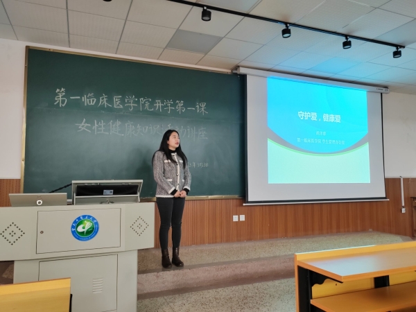 本次讲座邀请第一临床医学院学生管理办公室胡泽蓉老师主讲,第一临床医学院2022级全体女生参加。参与同学不缺不迟,表现出了对自身健康的关心与极度重视。胡泽蓉老师以“守护爱,健康爱”为主题,图文结合,从女性生理结构、常见疾病、保健知识等方面展开讲解。讲座过程中,老师结合丰富的临床经验,用大量鲜活的实例向现场同学们讲述了女性生理健康的重要性。倡导大家养成良好的生活习惯,做到科学防护,远离疾病困扰。同时,希望女大学生能够培养科学的、有界限的性心理,懂得性危机事件的防范知识。