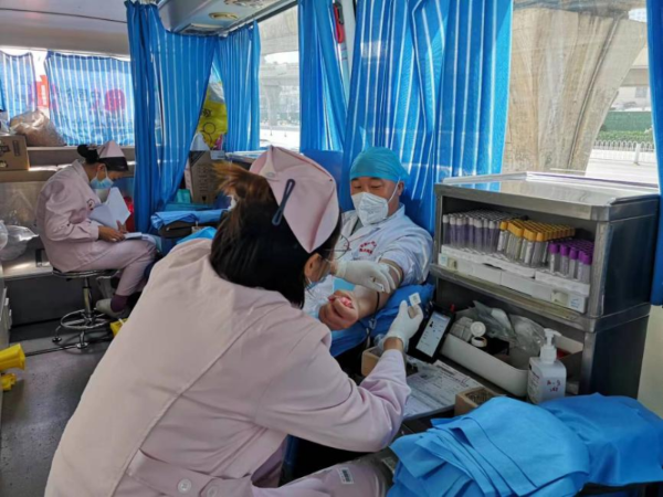 上午九时,采血车还未到达,登记点早已排起了长队。在完成准备工作后,身体检查合格的云中二院人们井然有序地踏上采血车,卷起衣袖,捐献出自己的一份热血。