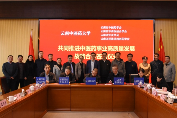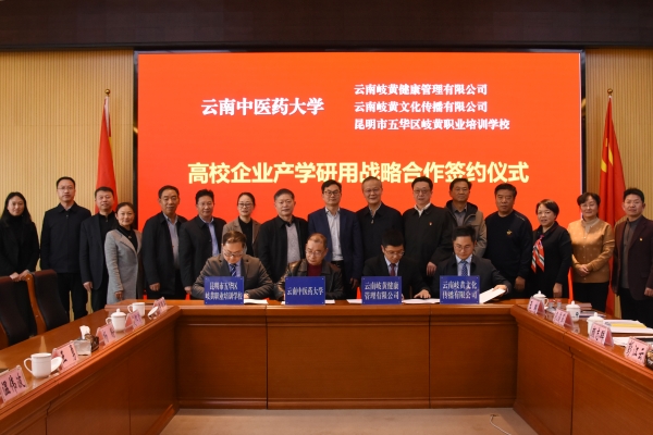 座谈会上,学校与云南省中医药界学会联合体签署共同推进中医药事业高质量发展战略合作协议,与校友开办企业云南岐黄文化传播有限公司、云南岐黄健康管理有限公司、昆明市五华区岐黄职业培训学校签订高校、企业产学研用战略合作协议。