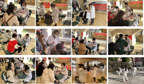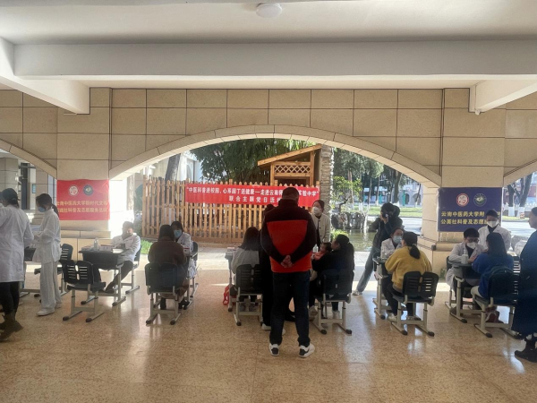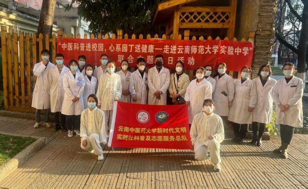 云中讯(第一临床医学院)为进一步增强教师群体健康意识,呵护教职工身体健康,弘扬中医传统文化,传播健康生活理念,2月9日下午,第一临床医学院第五党总支、第四党总支联合第二临床医学院学生党总支到云南师范大学实验中学,开展主题党日暨志愿服务活动,通过中医科普宣传和现场义诊相结合的形式,帮助教师们应对繁重的工作压力,引导教师们形成健康生活习惯。