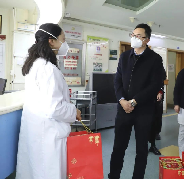 云中讯(附一院)1月17日下午,校党委书记邱勇到第一附属医院走访慰问一线医护人员及党员代表,对科室、医护人员奋斗在疫情防控一线,为保障人民群众身体健康的辛勤付出表示感谢,并提前致以新春祝福。校纪检处处长张颖、党委组织部副部长周游,以及第一附属医院党委书记徐莉娅等党政领导陪同慰问。