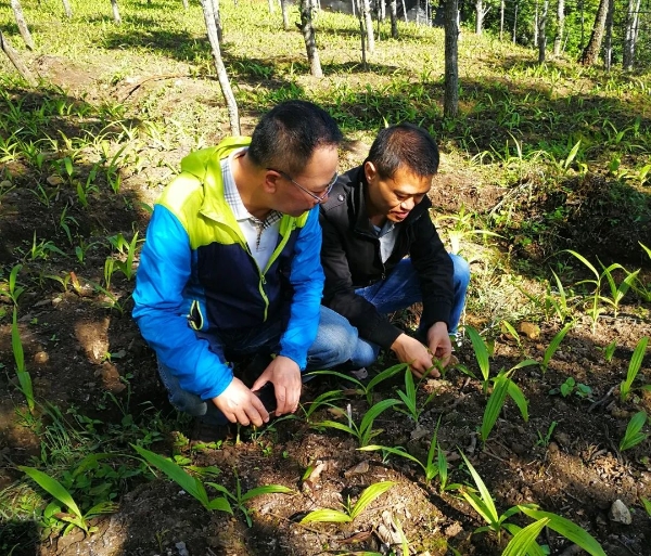 2017年6月8日,在永平县北斗乡梅花村中药材基地指导白及种植