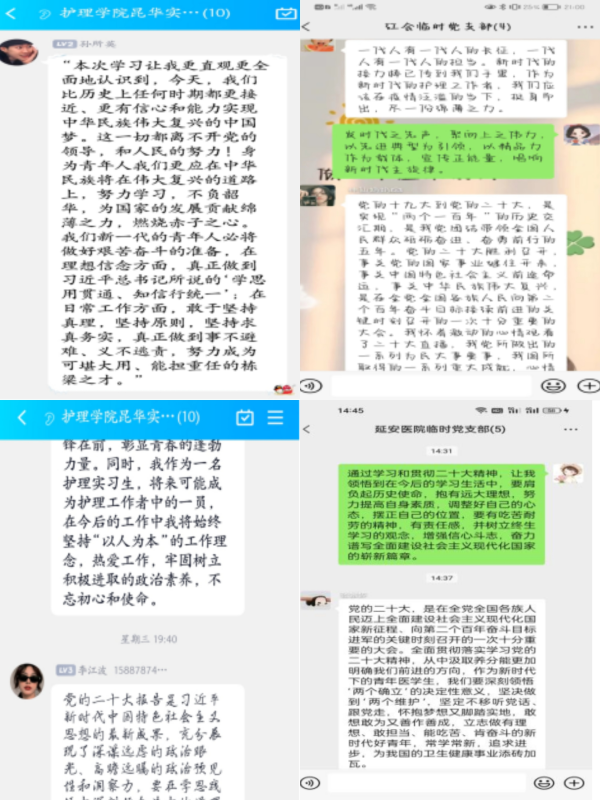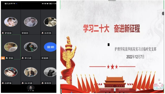 云中讯(通讯员 李娴 杨雯蕊 范红)12月7日至8日,护理学院昆华医院实习点临时党支部、延安医院临时党支部、红会医院临时党支部陆续开展学习活动,集中学习党的二十大精神。三个临时党支部全体党员参加学习。