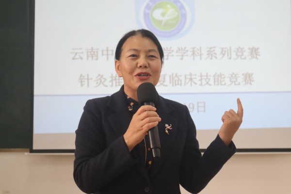 邰先桃在讲话中提到中医药传承与发展工作已提升到国家战略高度,作为“健康中国”建设的重要组成部分加以统筹推进,针灸推拿作为中国传统医学的重要组成部分,在新时代也迎来了前所未有的天时、地利、人和的良好态势。同时,她回顾了学院师生在历年全国针灸临床技能竞赛中的获奖情况,勉励参赛选手冷静细心,发挥实力、赛出风格、赛出水平!