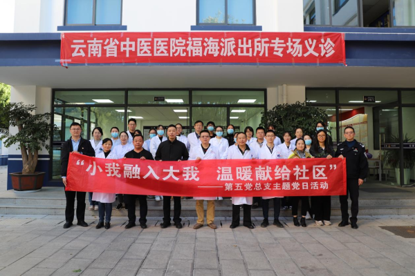 云中讯(通讯员 周娴)为进一步增进“医警一家亲”的深厚情谊,提升一线公安队伍和社区群众科学防病、健康养生意识,11月18日下午,第一临床医学院第五党总支师生志愿者组成的蒲公英志愿服务队,联合第一附属医院第三、第四党总支的专家,到昆明福海派出所开展主题党日暨中医志愿服务活动。