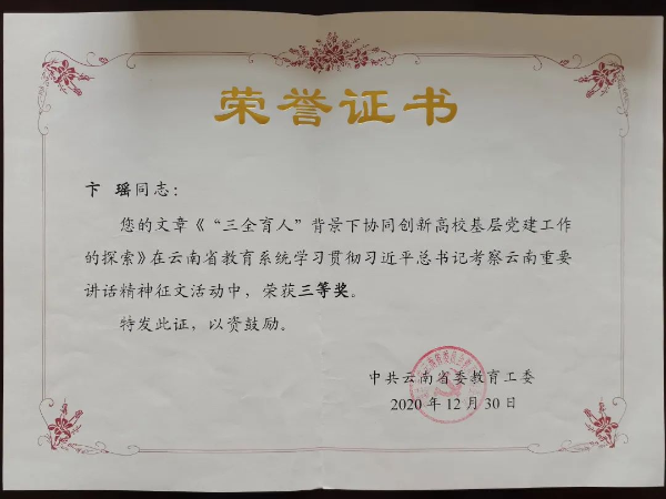 自2019年起,基础医学院全面承担云南省一流专业中西医临床医学专业五年一贯制人才培养。在人才培养中,坚决贯彻党的教育方针,持续推动习近平新时代中国特色社会主义思想铸魂育人,全面落实立德树人根本任务,培养符合新时代需求,守正创新的医学人才。“以本为本,促进四个回归”,以深化学分制综合改革、精准推进内涵建设为工作重点,积极提升人才培养质量。以一流专业一流课程建设为契机,提升本科教学水平。加强教学质量工程建设,促进教育教学研究。2019年,中西医临床医学专业成为云南省一流专业。重视“入学季”“毕业季”“表彰季”的“三季育人”工作,持续高效推进“三全育人”“十大育人”改革试点项目,全力构建“三全育人”格局。打造并不断深化“医者岐黄志”和“青年之光,点亮云中”两个党建带团建品牌项目,形成“纵边到底横边到边”的党建带群团建设工作格局。开展“传承经典,乐享晨读”活动、“仲景杯”中医经典知识竞赛、中医经典等级考试、“千金杯”中医方剂竞赛等系列活动,涉及学生4000余人次。2018年实施执业医师考试模拟月考制度,每年800余名学生参与,助力学生执业资格考试通过率的提升。2019年实施新生早晚自习管理制度,显著提高了学生的积极性和自主学习能力。2020届毕业生中7名硕士研究生考上北京大学等名校,继续攻读博士学位,本科生考研率达21.7%。获第三届全国高等院校暨行业医疗美容技能竞赛个人二等奖2人、三等奖2人及团体三等奖1项。李竞娜荣获“第十四届云南省大学生年度人物”和云南省高校“最美大学生”称号。陈天聪获2019年度“中国大学生自强之星”;黄文参加全国学联代表大会,靳霖溪在省故事演讲大赛中获学生组一等奖,杨尹娜获第三届“云岭杯”中华经典诵写讲大赛二等奖,还获“名方中医杯”中医经典传承大会“优秀团队”等奖。