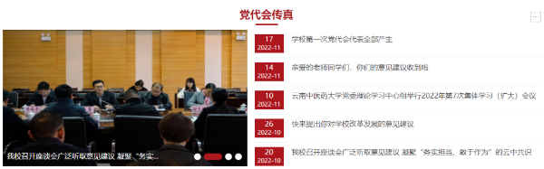 以“学习二十大 谋划新发展”为主题的中国共产党云南中医药大学第一次党员代表大会专题网站11月17日正式上线。