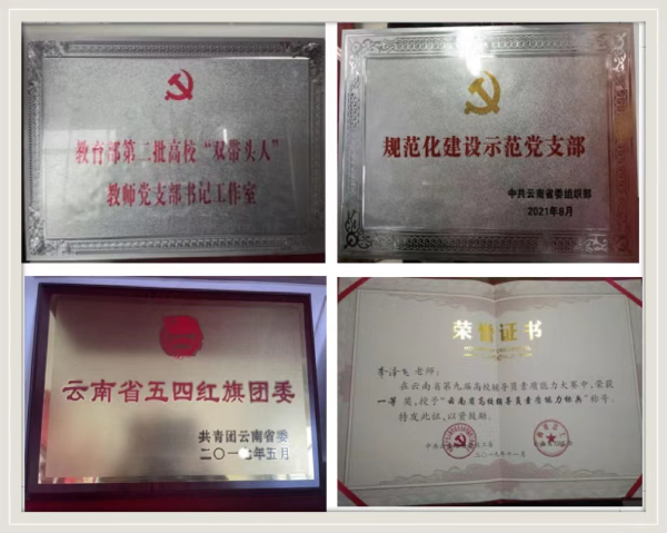 6年来,学院党建工作取得长足进步,成果喜人:2022年学院创建云南省一流党建“1233”典型工作法;2021年教师党支部被评为云南省“规范化建设示范党支部”,申报第三批全国党建工作标杆院系,学院6个支部全部按期完成规范化建设达标验收;2020年学院教师党支部获全国高校第二批“双带头人”教师党支部书记工作室立项;2020年学院获“全省第二批一流党建示范党组织”荣誉称号;学院党委书记荣获2017年度云南省高校“优秀党务工作者”、荣获2019年全国高等中医药院校“优秀党务工作者”;学院两名教师荣获云南省“最受学生敬佩辅导员”,一名教师荣获云南省“高校辅导员年度人物”。学院老师先后荣获全国中医药院校“优秀学生工作者”、“优秀辅导员”等荣誉称号,并在全省高校辅导员素质能力大赛中荣获一、二等奖。