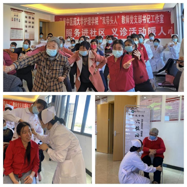 6年来,院党委将社会服务职能同党委、支部日常活动相结合,按照“党委创品牌、支部有特色”的基本思路,积极开展中医药文化进校园、进社区、进企业。将中医护理技能、中医传统功法、养生保健知识传播到幼儿园、小学、敬老院、社区、街道、基层医疗单位。先后组织开展各类服务社会活动100余次,累计服务当地群众上万人次。组织师生开展中医药文化三下乡活动。学院先后派出2名教师参与驻村扶贫,积极履行服务社会和文化传承职能。