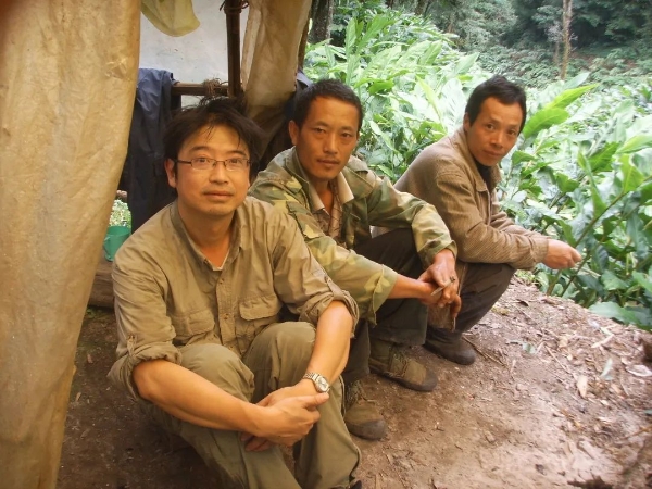 2008年杨耀文(左一)和高黎贡山草果种植户在一起