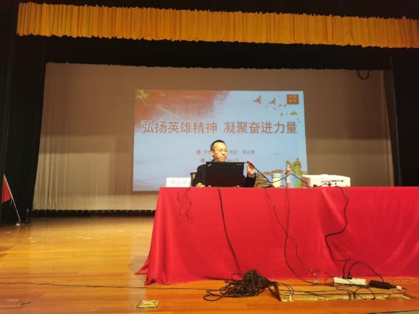 加强思想教育,坚定理想信念。学院党委书记毕立雄以“弘扬英雄精神,凝聚奋进力量”为主题,以抗美援朝战争中的英雄精神为切入点,结合国内和国际形势,生动讲述英雄精神的内涵,“崇尚英雄才会产生英雄,争做英雄才能英雄辈出”,教育引导新生作为新时代的中国青年,要铭记英雄、弘扬英雄主义精神,要“勇挑重担、堪当大任;胸怀世界、展现担当”。