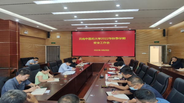 云中讯(保卫处)8月29日,学校2022年秋季学期安全工作会议在呈贡校区召开。会议由校党委副书记荀传美主持。党校办(疫防办)、宣传部、人事处、研究生处、学生处、教务处、科技处、基建办、保卫处、后勤服务集团、就业创业指导中心、各学院负责人参加会议。