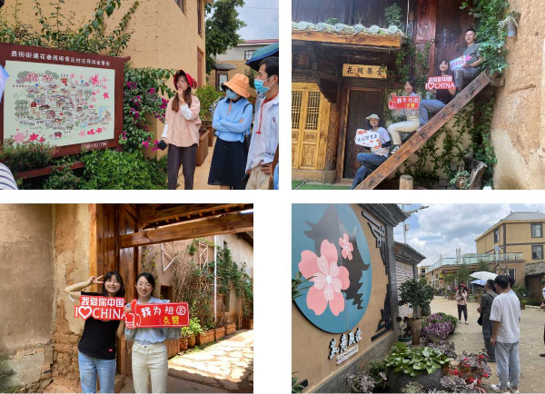 师生党员、团员在村委会工作人员的带领下参观了雁塔村“花巷雁塔”项目,来到雁塔村的党群连心亭,认真学习习近平总书记重要讲话精神。