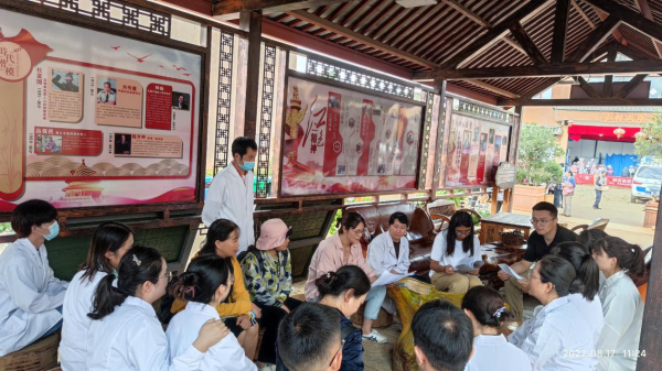 云中讯(第一临床医学院)为提升基层群众科学防病、健康养生意识,进一步促进优质医疗资源下沉,助力乡村振兴,弘扬中医文化,传播健康生活理念,增强广大群众对中医药的认同感和信任度,8月17日,在中国医师节到来之际,第一临床医学院第五党总支联合第三党总支,前往云南省乡村振兴实验村——安宁市雁塔村开展主题党日暨“三下乡”志愿服务活动。
