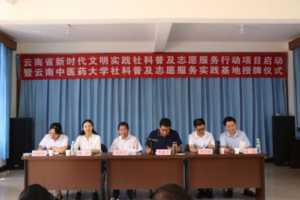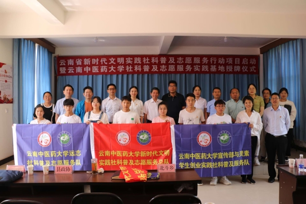 26日下午,云南省新时代文明实践社科普及志愿服务行动项目启动暨云南中医药大学社科普及志愿服务实践基地授牌仪式在永平县北斗彝族乡梅花村举行,县委副书记、县长李建平主持仪式并讲话。北斗乡被确立为“云南中医药大学社科普及志愿服务实践基地”,县委宣传部向我校志愿服务队颁发聘书。