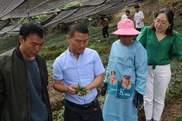 北斗乡是我校志愿服务队队员、我校高层次引进人才季鹏章博士专家工作站所在地。多年来,季鹏章博士在永平县从事和指导滇黄精、滇重楼、天麻、白芨、灵芝等道地中药材种植的科研及成果转化,取得一系列创新成果及显著的推广应用成效,其参与的科研项目“三七和滇重楼绿色生产技术及应用”获2021年云南省科技进步二等奖,中药材种植加工已发展成为永平县支柱产业之一。志愿服务期间,季鹏章、董家红两位专家结合北斗乡中药材产业发展情况,开展了中草药栽培与种植技术培训,为永平当地企业及中药材种植户在滇重楼和滇黄精实生苗繁育、规范化种植、中药材病虫害防治等方面进行培训指导。志愿服务队还来到鸿瑞农业技术开发有限公司调研中药材发展现状,针对当地滇黄精根腐病和滇重楼褐斑病发病面积广、造成经济损失严重的问题,两位专家从合理轮作、抗病品种选育、低毒和低残留化学农药的选用等方面,提出科学的防治建议。
