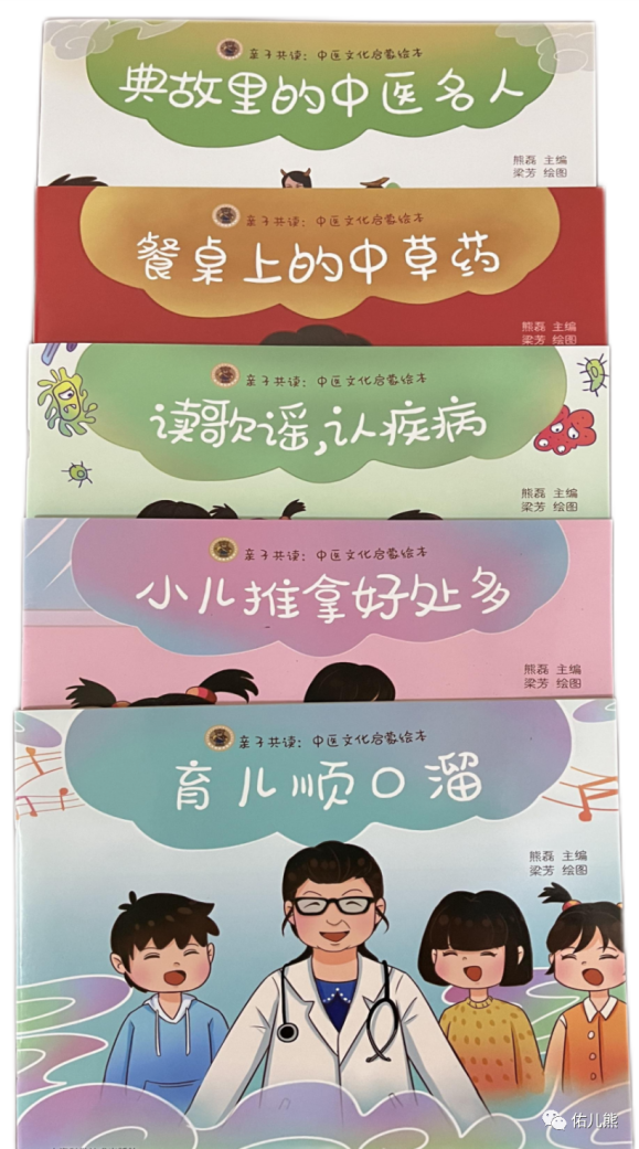 云中讯(新闻与融媒体中心)由熊磊教授主编、梁芳副教授绘图的科普新作《亲子共读:中医文化启蒙绘本》(以下简称绘本)日前出版。绘本第一集包括《典故里的中医名人》《餐桌上的中草药》《小儿推拿好处多》《育儿顺口溜》《读儿歌,认疾病》5册图书,该套书具有如下特点: 用生动形象的故事展现“大医精诚”的精髓;用朗朗上口的歌谣教小朋友认识疾病、帮助大朋友掌握育儿知识;用直观易学的图示普及小儿推拿;在读读认认、捏捏按按中体验中医药的神奇与魅力。