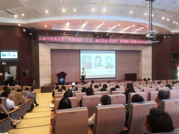 云中讯(组织部)2022年6月30日下午,在“七一”建党节来临之际,学校举办精品微党课“竞讲”和红色经典篇目朗诵“竞评”两场擂台赛,这也是今年学校“喜迎二十大 基层党建大比武”的系列活动,校党委书记王翠岗和副书记郭平出席比赛。全校15个二级党组织,70余名党员代表分别参加了两场擂台的比拼。