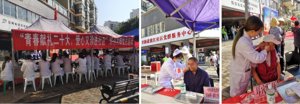 云中讯(第一临床医学院)在“七一”建党节来临之际,第一临床医学院第五党总支分别于6月29日、6月30日走进尚义社区、滨江社区开展“青春献礼二十大,爱心义诊进社区”主题党日活动。