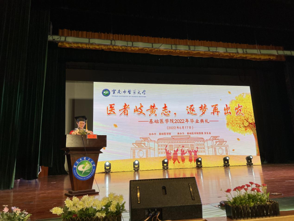 云中讯(通讯员 张磊 李康丽)时维六月,序属仲夏,桃李芬芳,不改离殇。6月17日下午,基础医学院在兰茂堂举办2022届毕业典礼,本次典礼以“喜迎二十大、永远跟党走、奋进新征程——医者岐黄志,逐梦再出发”为主题。校党委副书记荀传美应邀出席典礼,学院党政班子、导师和教师代表、全体辅导员、毕业班班主任及2022届毕业生共计360余人参加典礼,典礼由学院党委副书记张毅主持。