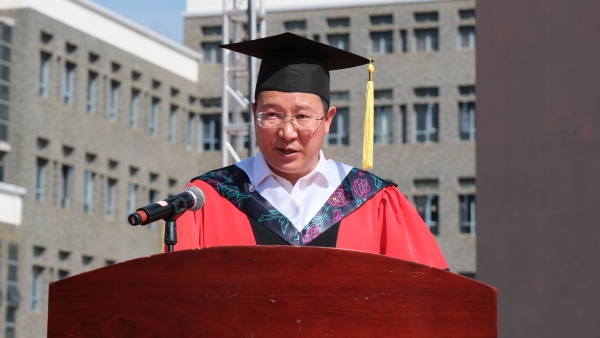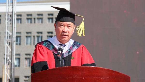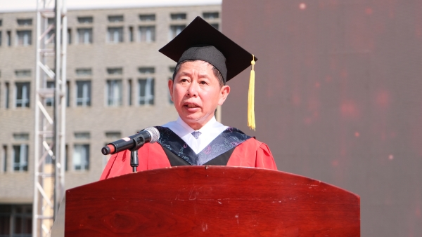 “在人生最美好的年龄段,你们与云中相遇,历经数不清的大考小考、志愿者服务和社会实践锻炼,开启一场以梦为马、纵横驰骋的‘青春游’,一段磨炼品性、检验成色的‘风雨路’,一堂披荆斩棘、战胜困难的‘实践课’,一首勤学苦练、携手并肩的‘大风歌’……”王翠岗书记情真意切、语重心长,字里行间饱含着对同学们的依依不舍和殷殷嘱托。他嘱咐同学们坚定理想信念,坚定不移听党话、跟党走;自觉担当时代重任,争当“强国先锋、复兴栋梁”秉承追求卓越,牢记“矢志奋斗、笃行不怠”。他希望同学们牢记嘱托,立中医志,做中医人,兴中医业,将个人梦融入中华民族伟大复兴中国梦,用实际行动成就理想,谱写人生的璀璨华章;希望同学们秉持“崇德和合,博学敦行”的校训精神,乘风破浪,勇毅前行,在人生新的征途上建功立业,努力成为堪当民族复兴大任的时代新人。