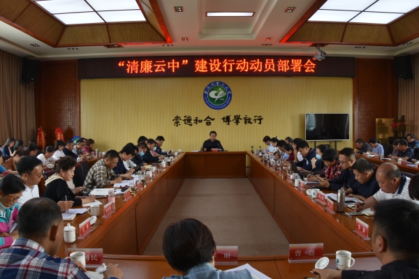 云中讯(纪检处)为进一步加强党风廉政建设和反腐败工作,深化清廉学校、清廉医院建设,5月19日下午,校党委召开“清廉云中”建设动员部署会,校党委书记王翠岗同志主持并作动员讲话,校党政领导班子成员、全体处级干部参加会议。