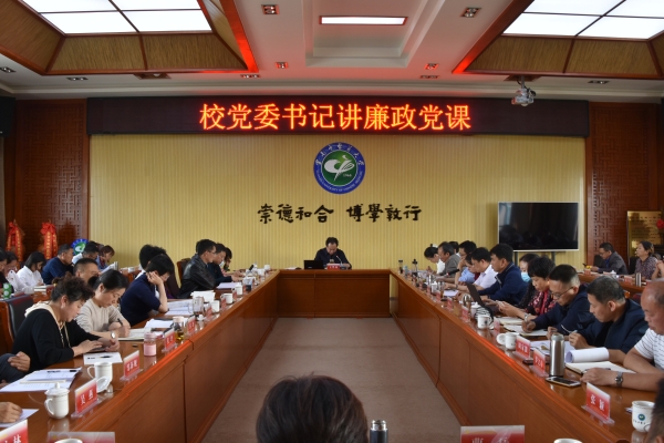 校党委书记王翠岗主持会议并讲授廉政党课,校领导班子全体成员,全体处级干部参加。
