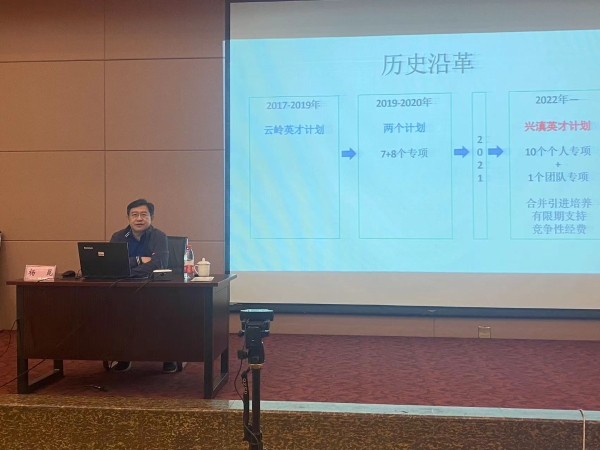 4月18日,学校组织申报人才项目的相关教师近40人在线观看了“云南省科技人才政策解读培训会”。会上省科技厅科技人才办副主任(厅人事处副处长)胡云作首先2022年科技人才工作情况,省科技厅科技人才办调研员杨磊权为“云南省兴滇英才支持计划—科技领军人才专项”相关作政策解读,省科技厅科技人才办主任科员王可心为“云南省兴滇英才支持计划—团队专项”相关作政策解读,省科技厅科技人才办助理研究员杨亚娟为云南省“两类人才”相关作政策解读。