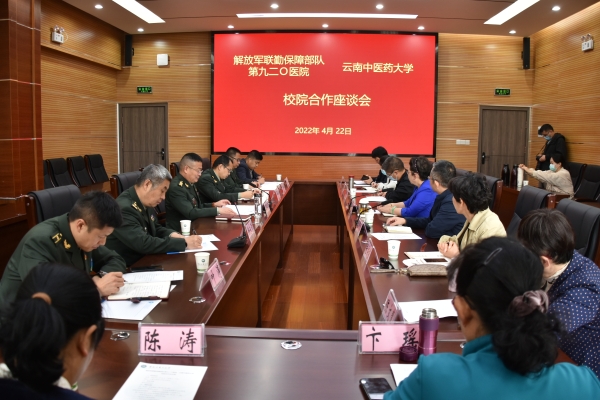 云中讯(记者 陈楠)4月22日,解放军联勤保障部队第九二0医院院长王炳军率医院相关工作人员到我校呈贡校区洽谈校院合作相关事宜。校长熊磊,副校长、第一附属医院院长温伟波陪同参观调研。