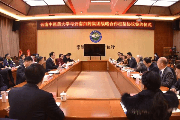 校党委书记王翠岗出席并致辞,校党委副书记、校长熊磊主持签约仪式。云南白药集团首席执行官董明出席签约仪式并讲话,中国工程院院士、云南白药集团中药研发总监,我校杰出校友、终身教授朱兆云出席并讲话。副校长孟庆红、杨鹤清出席仪式。云南白药集团及学校相关部门负责人参加签约仪式。