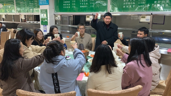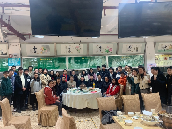 师生围座圆桌,同品年夜饭,在欢声笑语中迎接虎年到来。