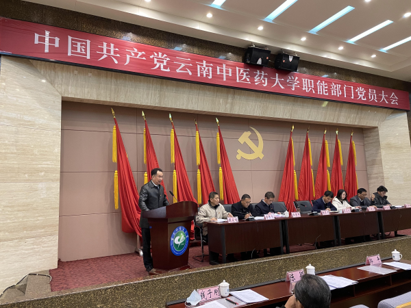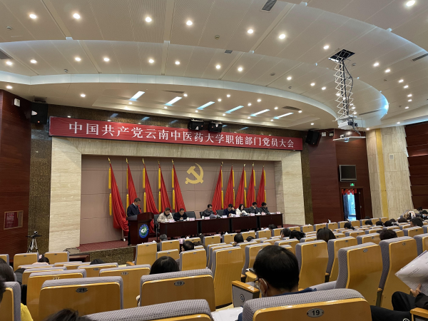 云中讯(职能部门党委)12月28日下午,中国共产党云南中医药大学职能部门党员大会在呈贡校区翰墨楼一楼报告厅召开。校党委书记王翠岗、组织部部长李正良到会指导,职能部门144名教职工党员出席大会,民主党派代表陈文慧、曹磊、张丽同志列席会议,会议由上届党委书记黄孝平、副书记常傲冰主持。